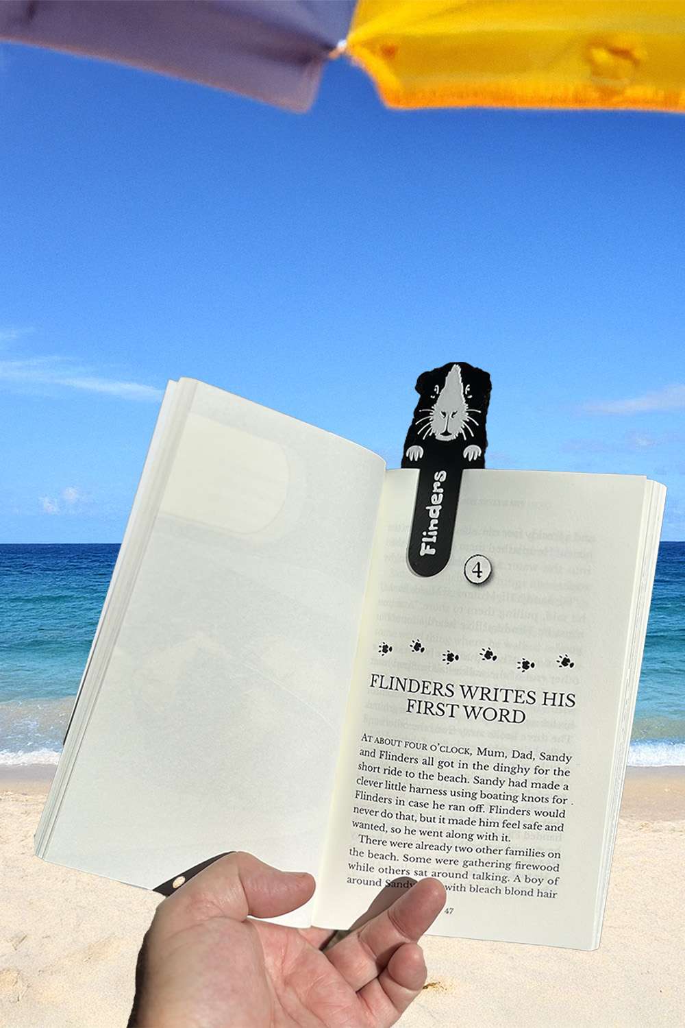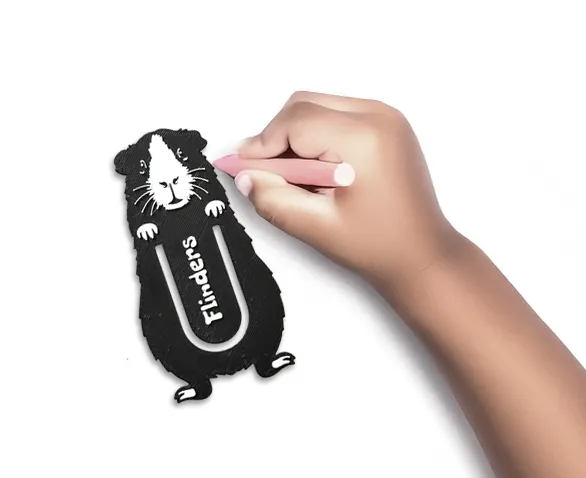 Our FREE 3D-printed FLINDERS BOOKMARK peeks cheerfully over the pages of your book — a tiny explorer keeping your place while you read.